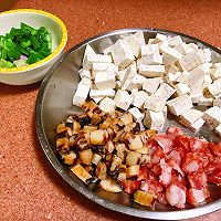 做法分解2:把腊肠、腊肉、芋头切成粒,把葱也切好。