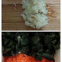 做法分解2:胡萝卜切丝在切碎或者搽成丝在切碎。此处为了显摆一下我切的细
