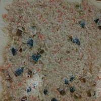 做法分解6:豆腐皮最好买薄的好卷,整张豆皮对半切大小。然后用饭铲把馅抹匀卷起,卷时压实