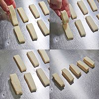 做法分解7:9、擀成4指宽,1指高的长条再分割成2指宽的小条,一刀下去不要来回拉扯