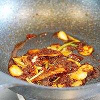 做法分解7:待锅中汤汁差不多收干时,倒入美极鲜辣汁,大火收汁。美极鲜辣汁辣香独特,辣味醇厚。