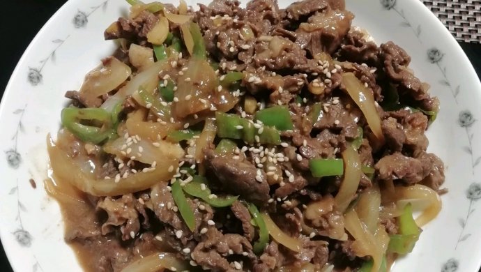 牛肉(里脊)250克或者300克,芝麻油一勺,盐适量,料酒适量,酱油3匙,葱适量,糖少许,熟白芝麻少许,食用油适量,大蒜适量,蚝油适量,尖椒一个