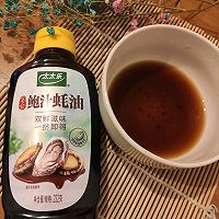 做法分解6:蚝油料汁:轻轻的挤两次蚝油、少许凉白开、少许生抽,和匀,备用
