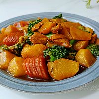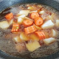 做法分解6:倒上提前切好的山药萝卜块,盖上盖子中火把块咕嘟熟