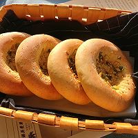 非常简单的一道面点,蒜香结合了椒盐的香味,越嚼越停不下来的馕饼。材料中筋面粉:100g高筋面粉:140g牛奶:100g鸡蛋:45g椒盐:8g白糖:10g酵母粉:2.5g黄油:10g蒜香油材料蒜泥:5g葱末:5g盐:1g蜂蜜:1茶匙植物油:10g