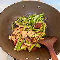 做法分解4:倒入香干加一勺味达美醇品蚝油翻炒(香干本身就是熟的,所以不用炒太久)