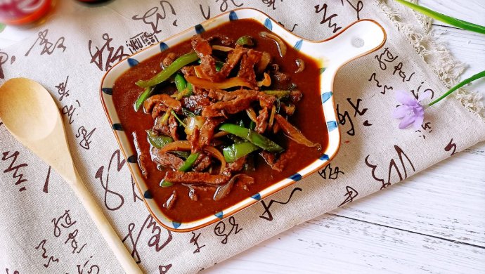 牛里脊适量,洋葱适量,黑胡椒适量,青椒适量,料酒适量,盐适量,淀粉适量,生抽适量,耗油适量,油适量