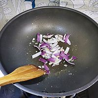做法分解9:另起锅锅里倒入少量橄榄油压入蒜泥放入洋葱翻炒出香味