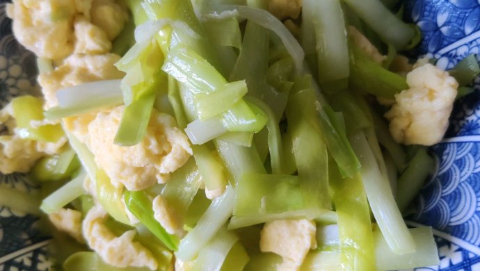 做法分解4:加入炒熟的鸡蛋一起翻炒,韭黄熟了就可以装盘了