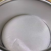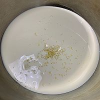 做法分解7:泡好的吉利丁片挤干水分,放入牛奶中,隔热水融化