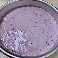 做法分解17:加入搅拌好的第四层,100g淡奶油,10g蓝莓酱,冷藏一个晚上