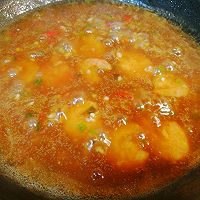 做法分解7:另取锅,锅内放少许油烧热,倒入蒜末辣椒末香葱末炒香,倒入金狗虾米加适量水煮一下,把调料汁倒入,中小火慢慢搅拌至黏稠关火。