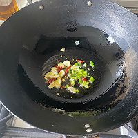 做法分解5:锅里倒油下蒜片和辣椒