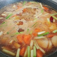 做法分解4:继续划拉到蒜白挺香萝卜油润润,倒上山药加上水,基本跟所有菜块齐平那样子