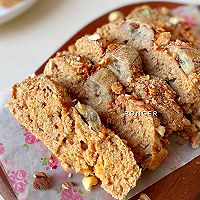 做法分解17:香蕉和坚果的加入,让无糖无油的全麦磅蛋糕味道超赞,热量不高,每天早餐一片元气满满!