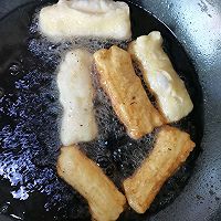 做法分解5:油温不要太热,太热的话表面上色了,但是里边不熟,如果太冷的话,那个它就发不起来的样子。