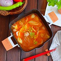 西红柿2个,牛肉丸子200克,粉丝一把,白菜100克,洋葱一块,食用油10克,盐5克,番茄酱10克,蘑菇粉一勺