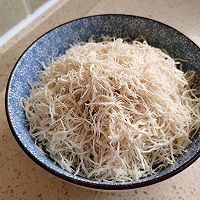 做法分解6:然后将鸡胸肉撕成细丝备用,这一步需要多一点耐心,尽量撕的细一点,这样做好的肉松才会比较细腻。