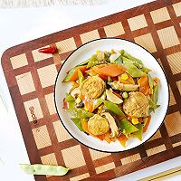 做法分解6:放入面筋泡、玉米粒、青豆粒,加入料汁