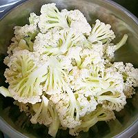 做法分解3:菜花煸炒微微变色,有焦边捞出