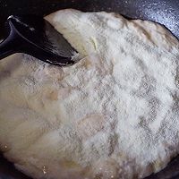 做法分解4:棉花糖融化后关火,倒入奶粉,搅拌均匀