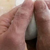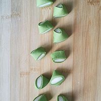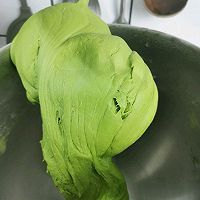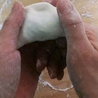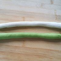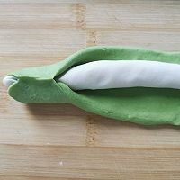 做法分解10:绿色擀开包裹原色面团捏紧,搓长