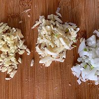 做法分解6:锅底少许油烧热,倒入葱香蒜末、麻椒炒香,再倒入郫县豆瓣酱炒出红油。