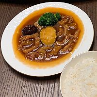 做法分解8:Ⅰ将炒过的鲍鱼和鸭掌放入锅中加适量水煮,加入香菇和调制好的酱汁<最好用砂锅>Ⅱ收汁10min即可出锅摆盘