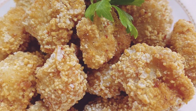 鸡胸肉1块,生抽适量,盐适量,白胡椒粉适量,五香粉适量,泡打粉适量,中筋面粉适量,粗粒地瓜粉适量,蒜3-4瓣
