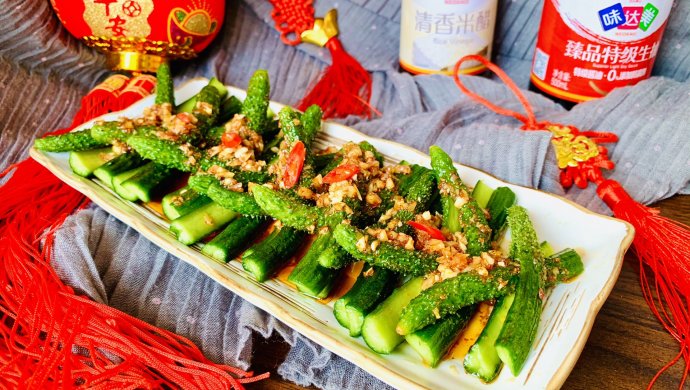 黄瓜200克,蒜3瓣,糖7克,辣子适量,盐2克,味好美臻品特级生抽2勺,味好美米醋4勺