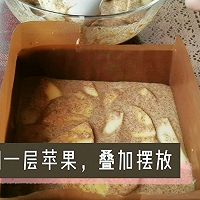 做法分解6:材料放入一半时,放些肉桂粉,继续叠加面糊和苹果
