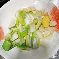 做法分解4:起锅放入少量油,放入五花肉煸炒出油变透明,放入葱姜蒜爆香。
