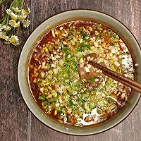 做法分解7:肉片全下好后,大火煮一分钟即可盛入碗中,撒上花椒粒、蒜末及葱花