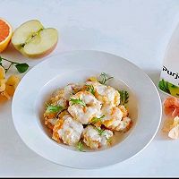 做法分解7:装盘:将酱汁淋在虾球上,用配菜做装饰。外酥里嫩的虾球,配上酸甜爽口的苹果青稞果肉,Q弹鲜美。老少皆宜。适用于任何聚会场合的餐桌。