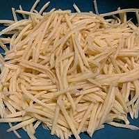 做法分解6:锅中加入适量油,油温六成热下入土豆丝炸至金黄变硬(小心烫伤)
