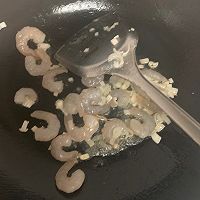 做法分解3:另起锅油烧热爆香葱末下虾仁翻炒变色。