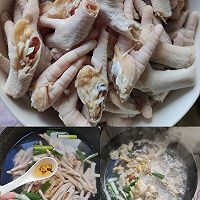 做法分解1:鸡爪用自来水洗干净,可以剪去指甲一个切开两半,放入锅中。加入三勺料酒,大葱一根切开放入,几个姜片,半勺盐。水开后转小火煮12-20分钟,中途会有浮沫,要用汤勺舀出来丢掉。(用筷子可以插入鸡爪掌就可以了,大家根据喜欢软硬程度定时间,我都会煮20分钟)