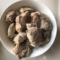 做法分解2:排骨用凉水泡出血水,清洗两遍,凉水下锅煮开,捞出备用。