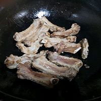 做法分解3:开小火,排骨干煸发黄,有少许油渗出即可