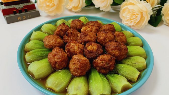做法分解15:肉丸肥而不腻外焦里嫩,油菜鲜香脆爽味道好极了,荤素搭配好吃又营养。