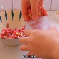 做法分解5:加入部分冰水地瓜粉?(冰水跟地瓜粉分三次加入)(用冰水比较Q冬天做可以用常温水)