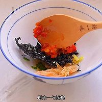 做法分解10:葱姜虾米紫菜鸡精醋辣椒加入碗里备用。