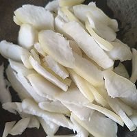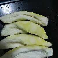 做法分解11:将柚子皮攥干水分,铺开,切成这样的三份,我们要头尾两份(中间方方正正的那块留着做另外一道美味的柚子皮菜,想了解的请耐心等待我的新菜谱)
