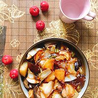 做法分解14:倒入热水没过菜,盖盖中火炖煮。