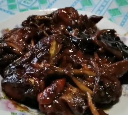 做法分解4:炸好了,放入锅中放入。蚝油,冰糖,葱姜蒜,,