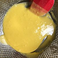 做法分解12:把蛋白分3次倒入蛋黄里用刮板搅拌均匀