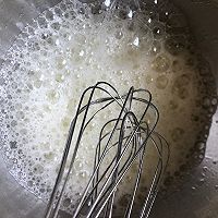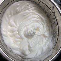 做法分解9:开始处理蛋白:用打蛋机搅拌15秒高速打发,把剩下的糖分两次分别打发