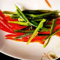 做法分解2:准备好青椒红椒丝,以及最后要淋上去的料汁儿:豆豉油1勺,陈醋1勺,盐巴少许,调味鸡精半勺,耗油半勺