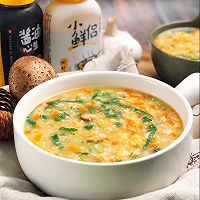做法分解4:碗中打入1个鸡蛋,挤入小鲜侣调味汁搅打均匀,这个调味汁由鸡肉、鱼肉、贝类等多种食材中提取,不添加防腐剂,食用香精和人工色素,是健康有肽无添加的安全调味品;