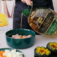 ??有人说婚姻多是三年痛,七年痒,十年淡如水。不觉间我和老公已走过十年婚姻生活。也许是这十年忙着在这个都市安身立命,竟没觉出痛也没感到痒,反而随着孩子们长大,我们这个家一砖一瓦越发“瓷实”了。看着老公虽然还不到40却已双鬓日渐斑白,心里又是幸福又是心疼。这十年,走的太快,竟然没有好好过一个情人节,这个白色情人节我要以菜示爱,一定要给他一个小浪漫,做一道咖喱鸡肉芝士焗南瓜。这道菜还是好久以前我和老公在餐厅吃过一次,老公特别喜欢,只要是老公喜欢的我都愿意花心思去研究一下,这次就让老婆大人在家为你亲自下厨烹饪吧。给爱的人下厨我首选我钟爱的金龙鱼橄榄调和油,这是一款非常适合我们中餐高温烹饪的橄榄调和油,而不是大家常见的那种适合西餐或凉菜的橄榄油哦。而且它营养丰富,除西班牙进口的特级初榨橄榄油外,含有亚麻籽油、葵花籽油、玉米油、稻米油,是市面上少见的健康高品质油!